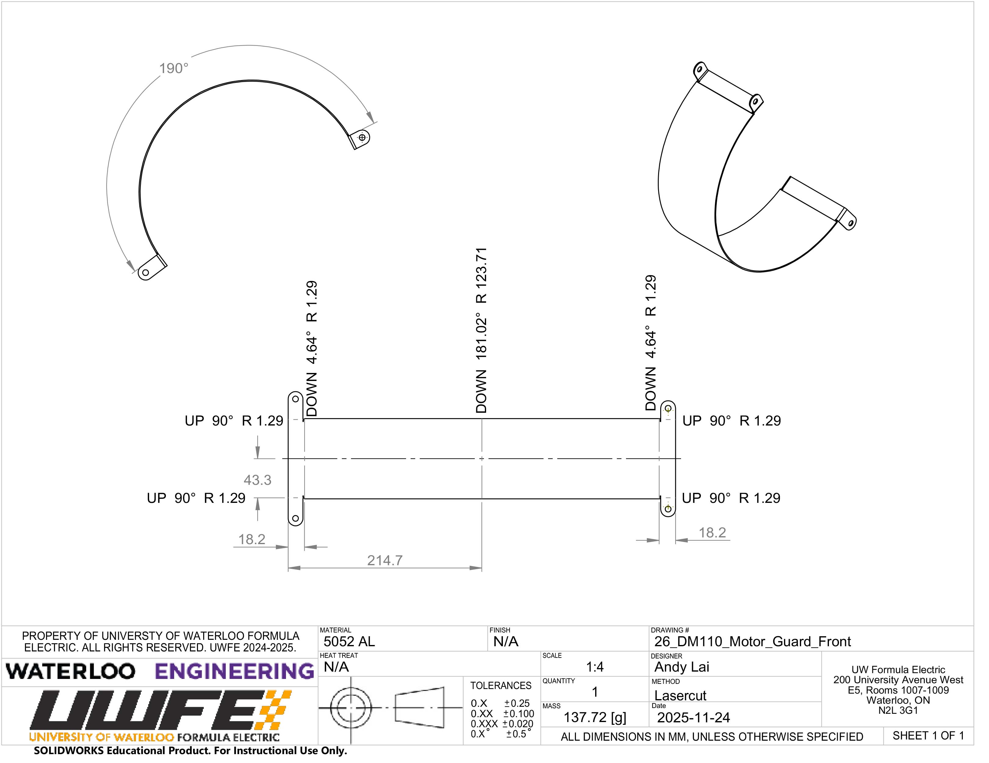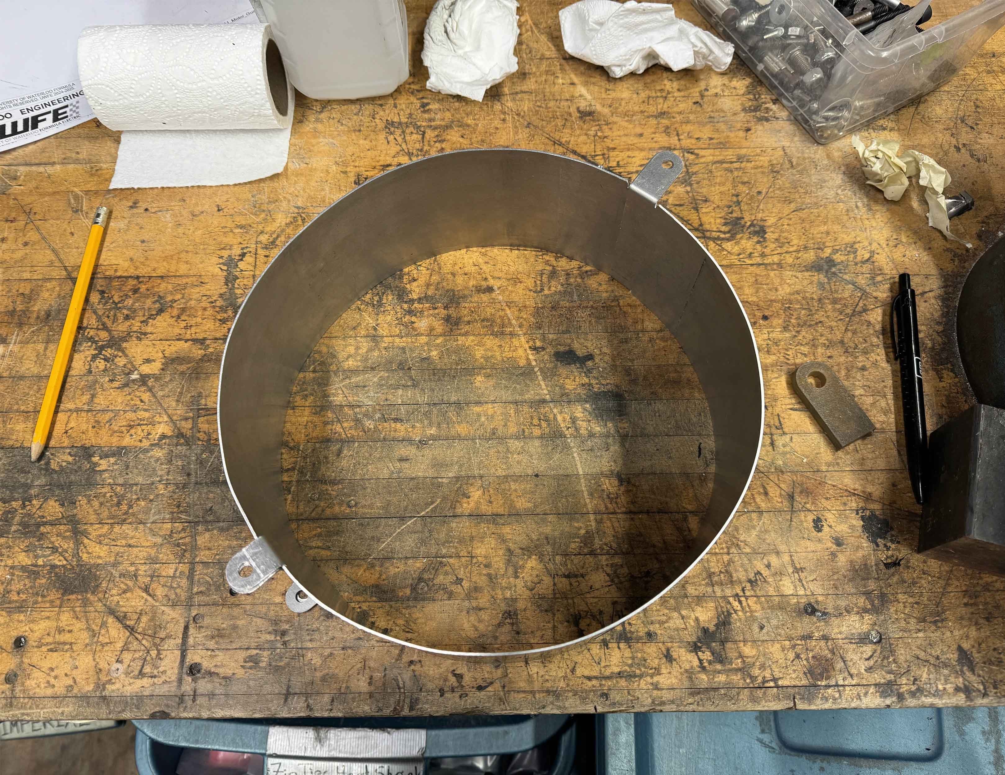Designed and manufactured an FSAE rules legal scatter guard to enclose the EMRAX 228